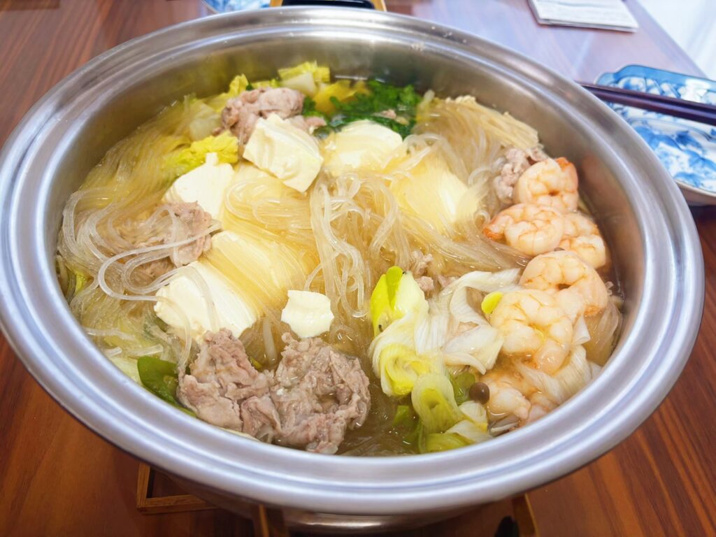 鍋はもう皆の好きな物をとりあえず入れるスタイルでエビも入れば豚肉も入る、好きな物鍋が出来上がりました🤣