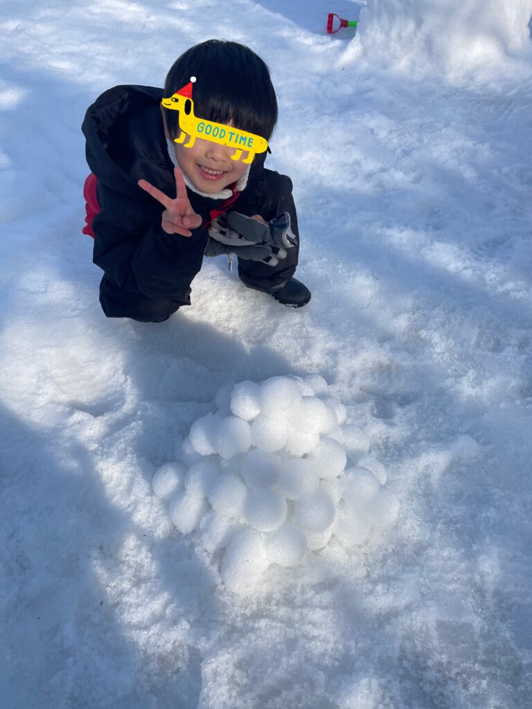 雪玉ーメーカーという道具を使って、丸い雪玉を何個も何個も作って遊びました