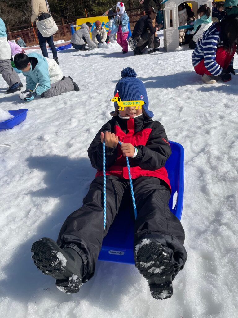 前夜に造雪機❄️で作られた人工のゲレンデで、”スキー、スノーボード等は一切禁止のソリ滑り専用ゲレンデなので、小さなお子様にも比較的安心して楽しんでいただけます”とのこと😃